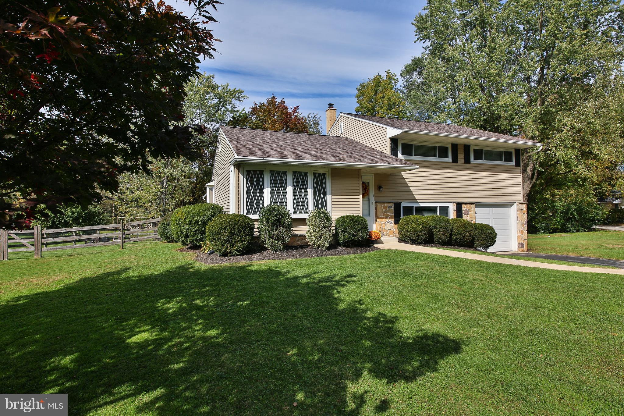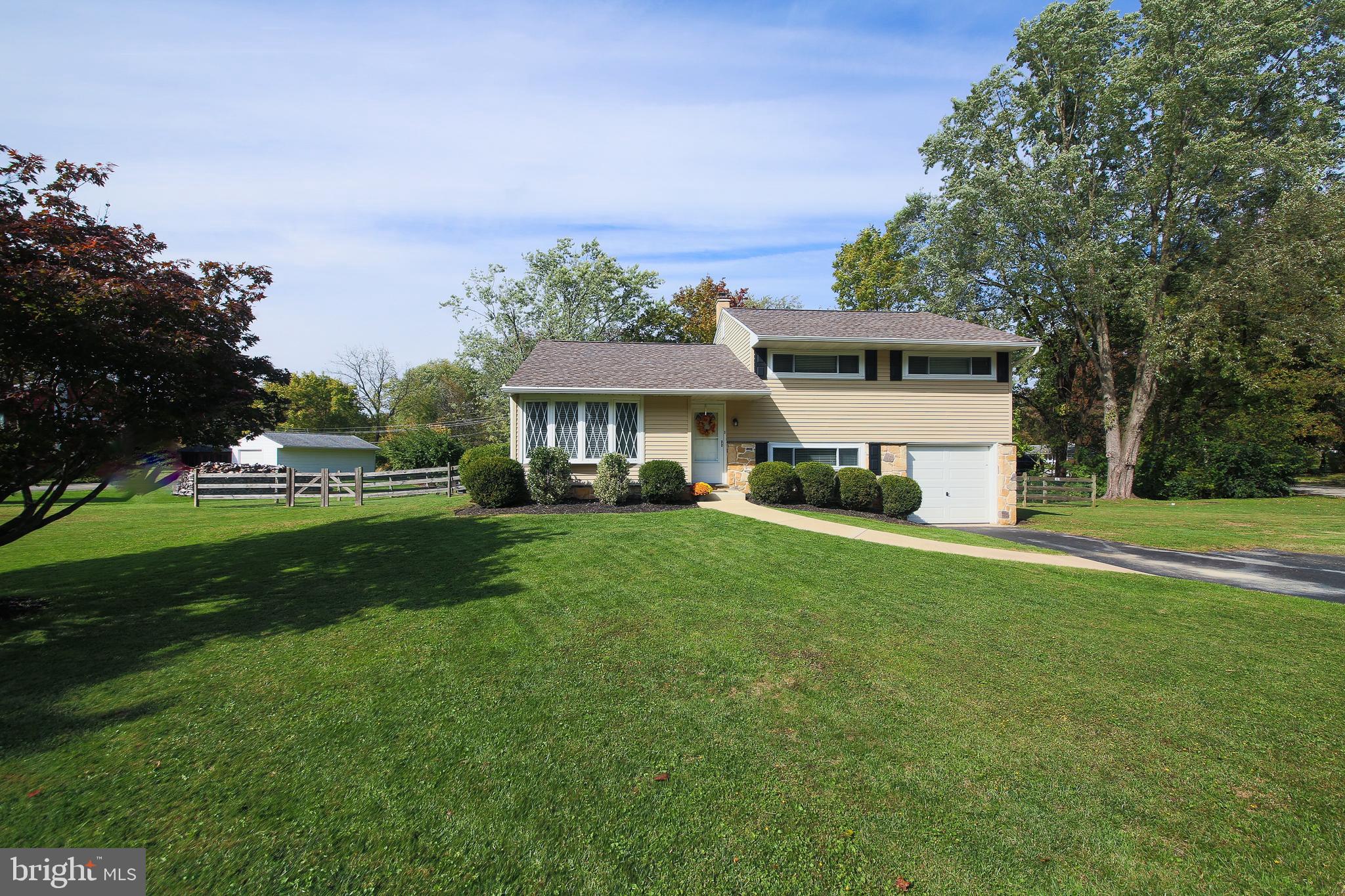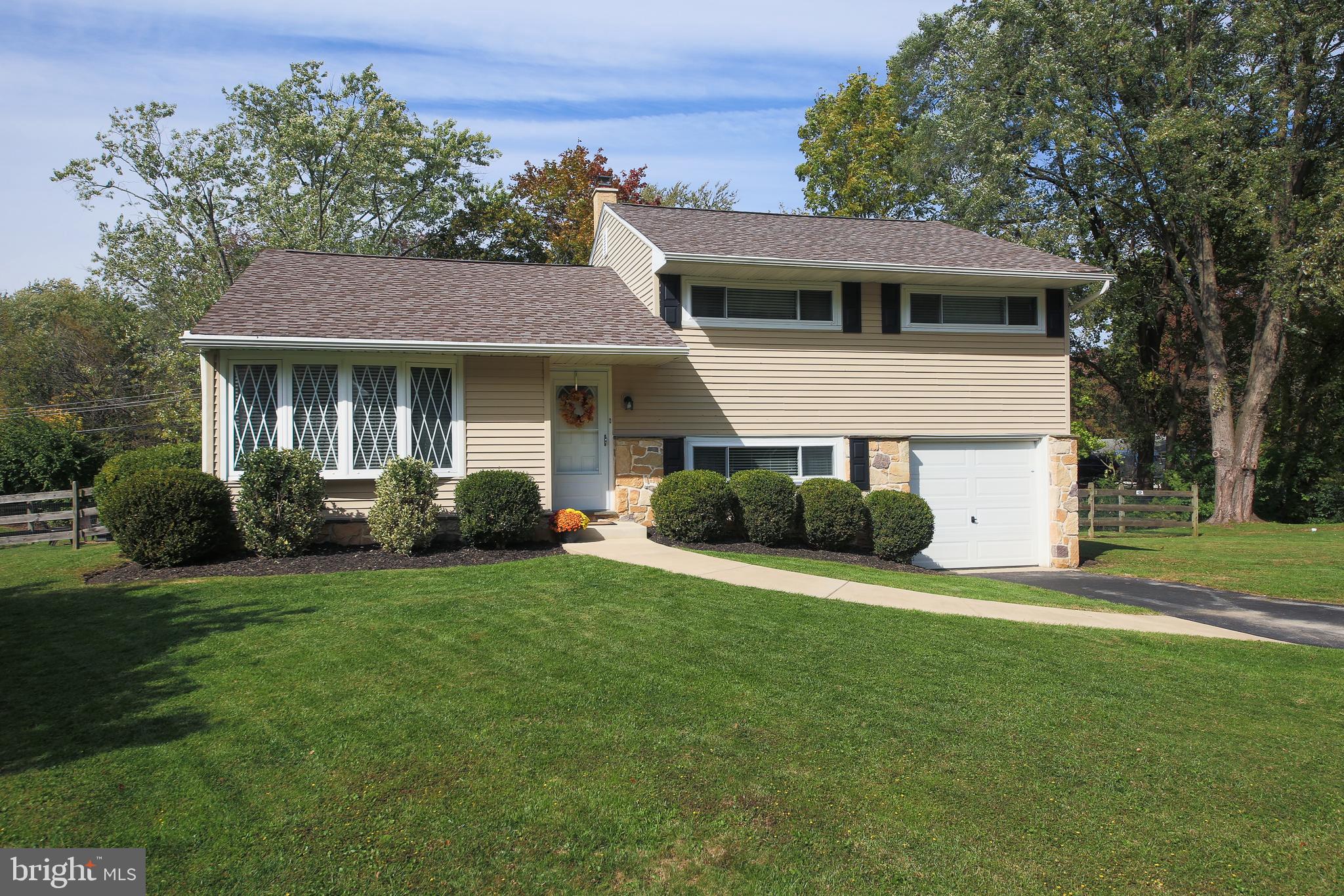 Welcome to tree-lined Valley Road, where this immaculately kept split-level is sure to please! The corner lot is expansive, and you'll be immediately enamored with its curb appeal. In the entry foyer, you'll notice the gleaming hardwood floors that run through the living room, and the large coat closet. The sunny living room features a lovely bay window and recessed lighting, and it opens nicely into the kitchen. This eat-in kitchen has refreshed cabinetry - and plenty of it! There is a built-in pantry and counter space galore. It has a subway tile backsplash, stainless appliances and a brand-new refrigerator (included). The charming side window with deep sill is perfect for your favorite plants. The kitchen also opens to an oversized sunroom with luxury vinyl plank flooring, electrical outlets, a ceiling fan, and sliders all around. This room is ideal for large-party entertaining, but the current owners use it for every day living too. Pop the grill on the deck and you're ready to go! Upstairs, you'll find 3 well-sized bedrooms and hardwood floors throughout. The primary bedroom can easily fit a king-sized bed. The hall bath is beautifully updated with wainscoting, newer vanity and tiled shower/tub. There is a large hallway linen closet, and the 3rd bedroom has access to an enormous walk-up attic where there is endless storage space. On the lower level, you'll find new carpet in the family room. This room could also be used as a playroom, home office or workout area. The laundry/mud room has vinyl flooring, garage access, and is home to the mechanicals. A powder room with new vanity and toilet complete this level. The rear, fenced yard is picturesque - a stream behind you and greenery everywhere. Store your yard equipment in the shed. This home sits in the desirable West Chester school district and is just minutes to the Chester Valley Trail entrance, where you can enjoy walking or biking. Convenient access to Main St. at Exton, Target, Whole Foods and the library. Come see all that 116 Valley has to offer!
