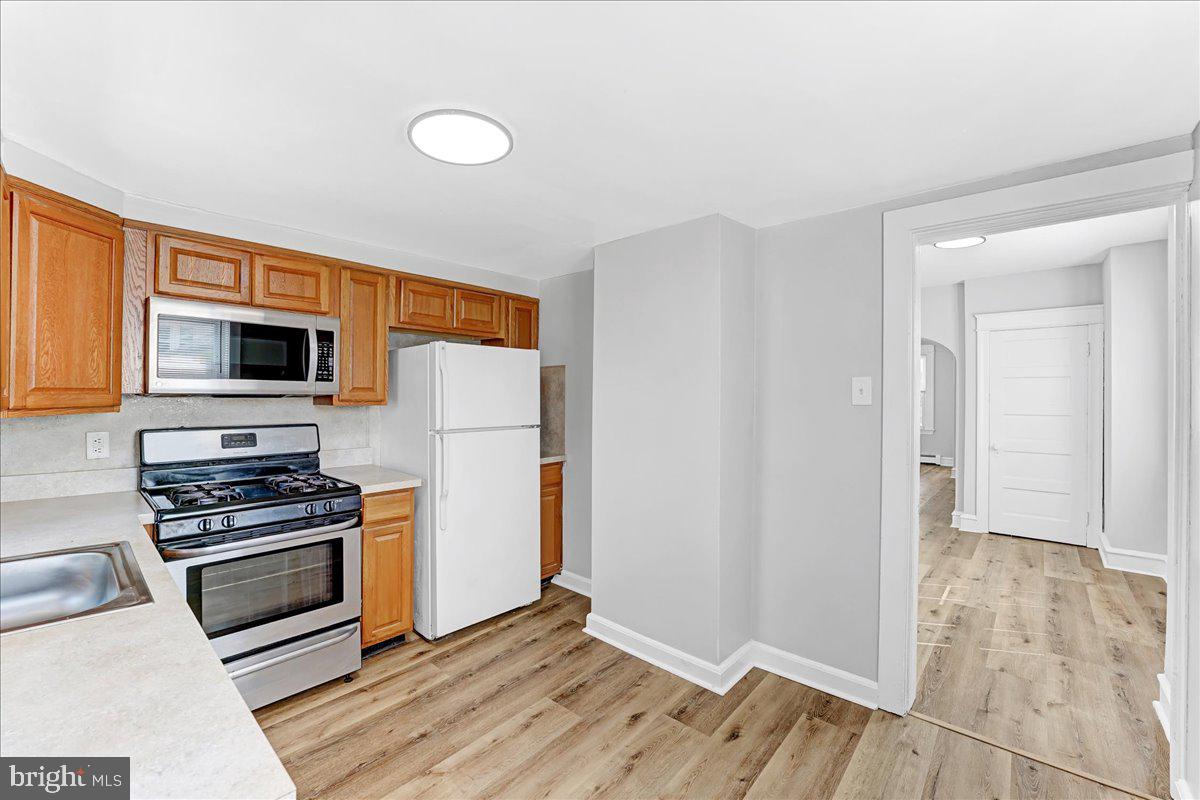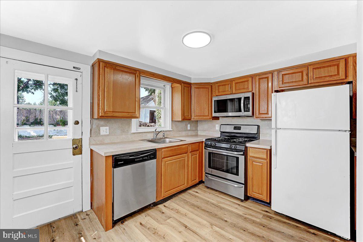 This large 4 bedroom, 2 full bath single family home is now available! Arrive to the covered front porch! Enter to new luxury vinyl plank floors, a large living room gives way to dining room with natural light and large eat in kitchen with access to rear deck and yard. The first floor primary bedroom features a brand new full bath with tub and tile surround. Make your way upstairs to find 3 additional bedrooms serviced by the second full bath with new vanity and floor. A large walk up attic provides plenty of storage. The large dry basement has new windows and laundry! Fresh paint, new flooring, great location, don't miss this one. Schedule today. (owners are licensed real estate agents.)