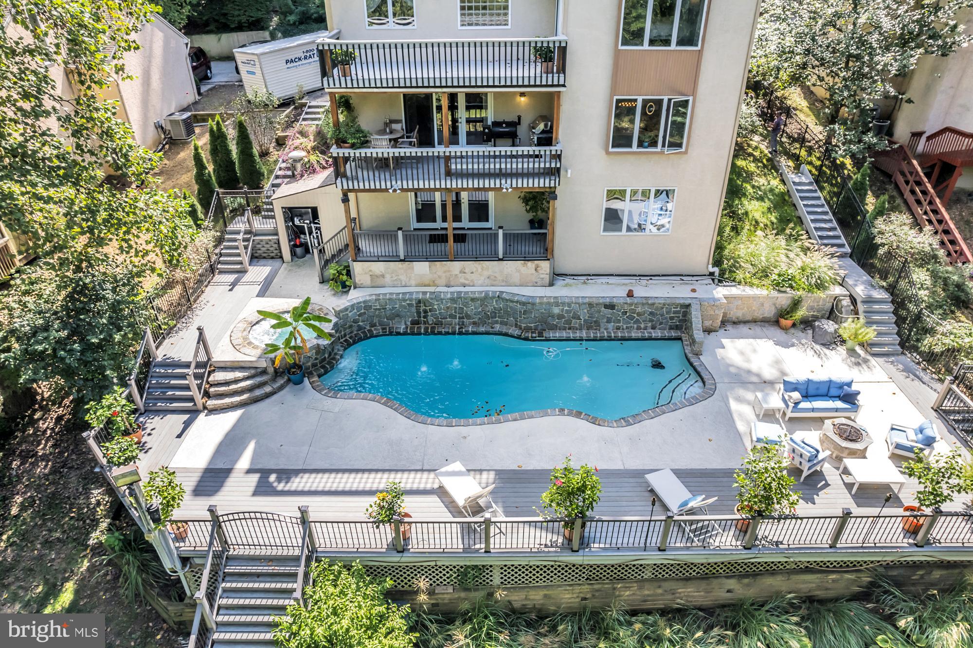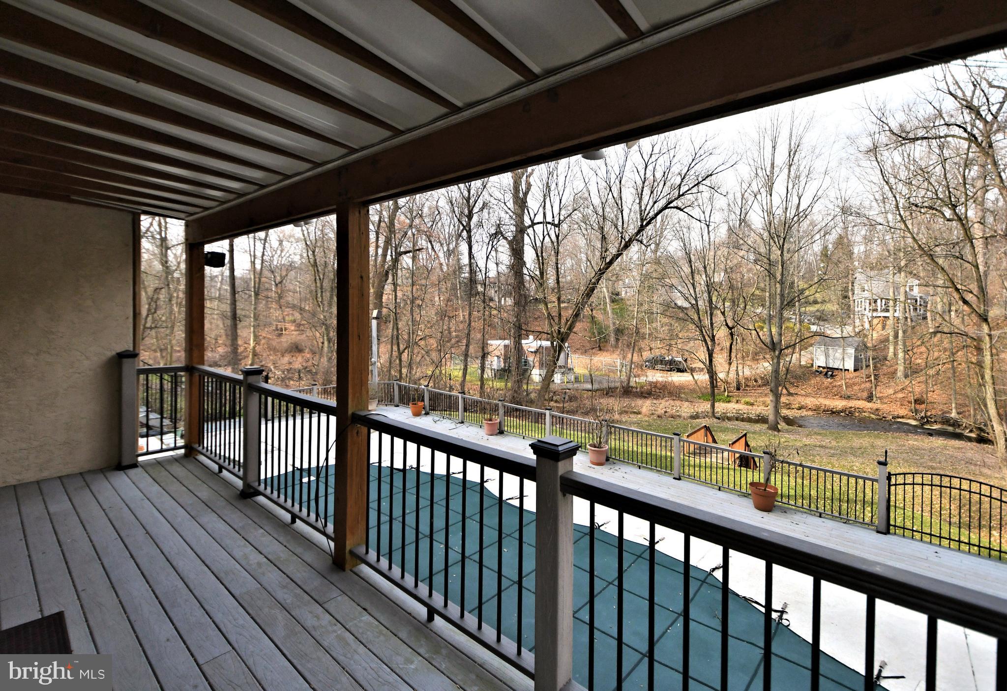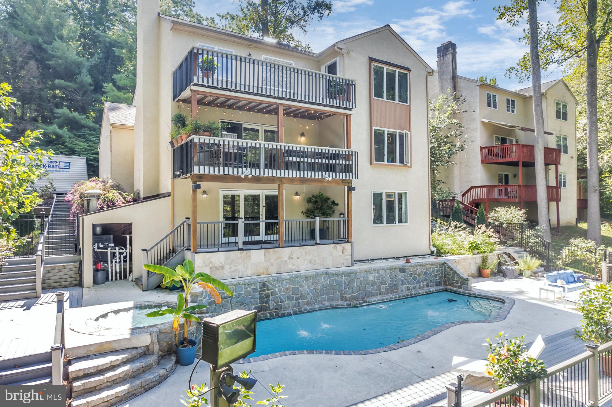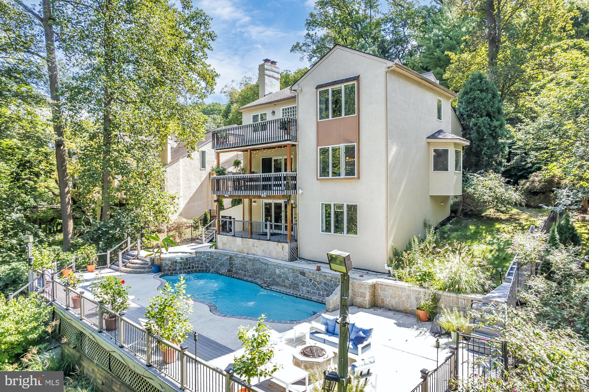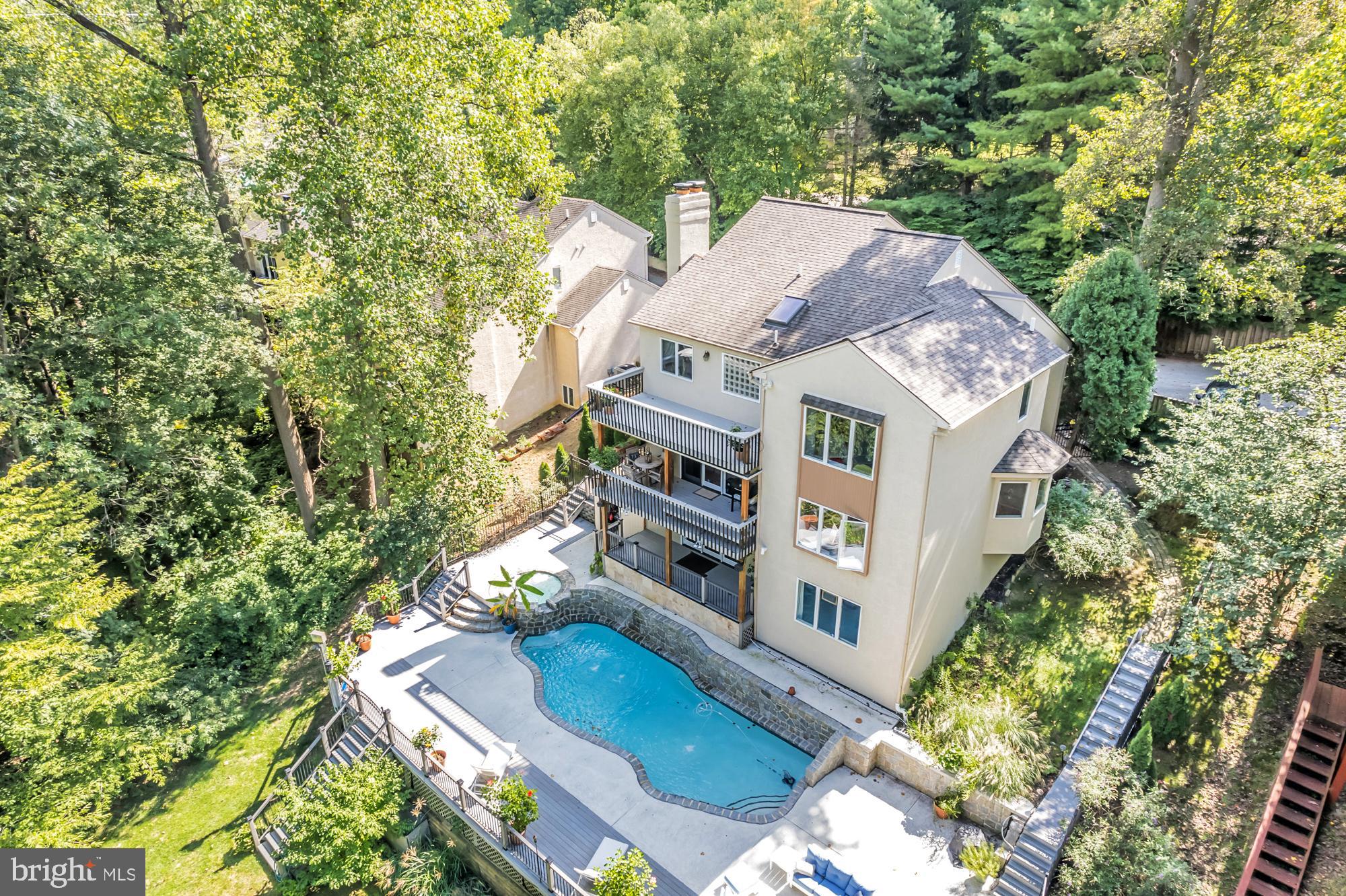 UNIQUE RESORT STYLE LIVING! The highlight of this three-story home is the Vail, Colorado-like setting, relaxing on a multi-level deck overlooking a salt-water pool, hot tub and tranquil grounds that include lush landscaping and stream. Upon entering this completely modernized home is the foyer with beautiful 3/4" Lyptus hardwood floors that lead into its' open main living space. A stone gas fireplace is an invitation to unwind after a stressful day. Oversized glass patio doors lead to a cover deck perched high above your private Oasis. The Sun-drenched kitchen offers oversized windows, with new maple cabinets, soapstone countertops, stainless dual sinks, custom tiered breakfast bar, stainless appliances and a five-burner chef's stove. Traveling up the impressive staircase to the owner's suite...another breathtaking space that will make every night feel like you are on vacation features a dramatic cathedral ceiling with a wood beam, hickory hardwoods, and its' own private deck overlooking the pool, yard and creek as well a NEW luxurious full bath, oversized shower with frameless glass door, custom vanity also with a vaulted ceiling a. Three bedrooms, ample closets, New laundry area and remodeled full bath complete the upper level. The lower level is above grade with an abundance of light coming from the large patio doors and windows, making this space great for casual gathering around the stone fireplace, extensive wainscoting and full bath. This additional square footage is ideal for an in-law or au pair suite, or at-home office. Exiting from the ground level is the third deck and access to heated pool and hot tub accented by gorgeous field stone, waterfalls, fountains and gas fire pit. Just imagine the incredible pool parties! All this privacy, yet you are so close to major routes like 76, 422, 202, and multiple train stations. Only minutes to Center City Philadelphia, King of Prussia and Conshohocken. Convenient two car attached garage and driveway parking. Easy to Show! Make your Appointment Today. BACK ON THE MARKET AFTER REMODELING! AVAILABLE FOR IMMEDIATE OCCUPANCY!