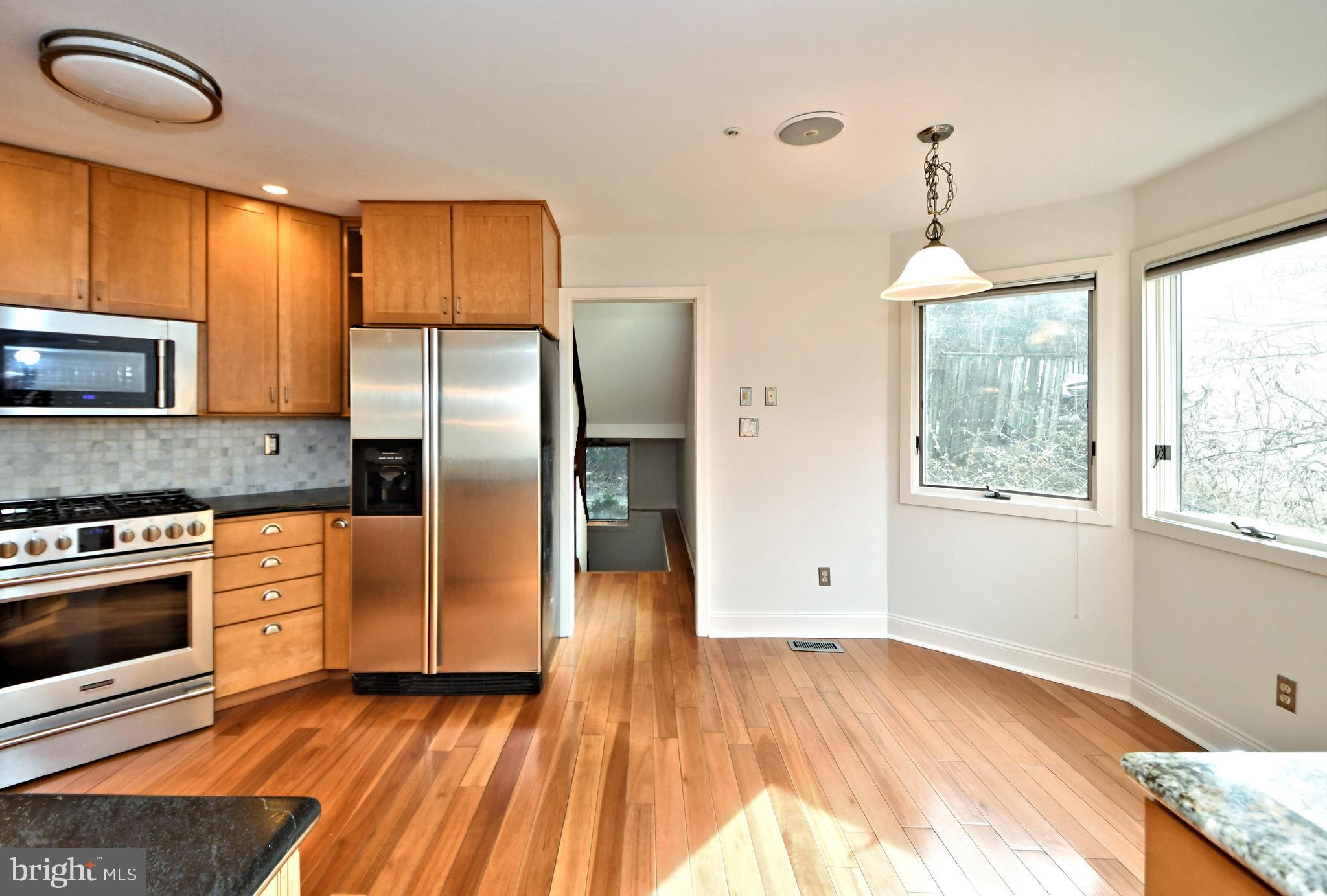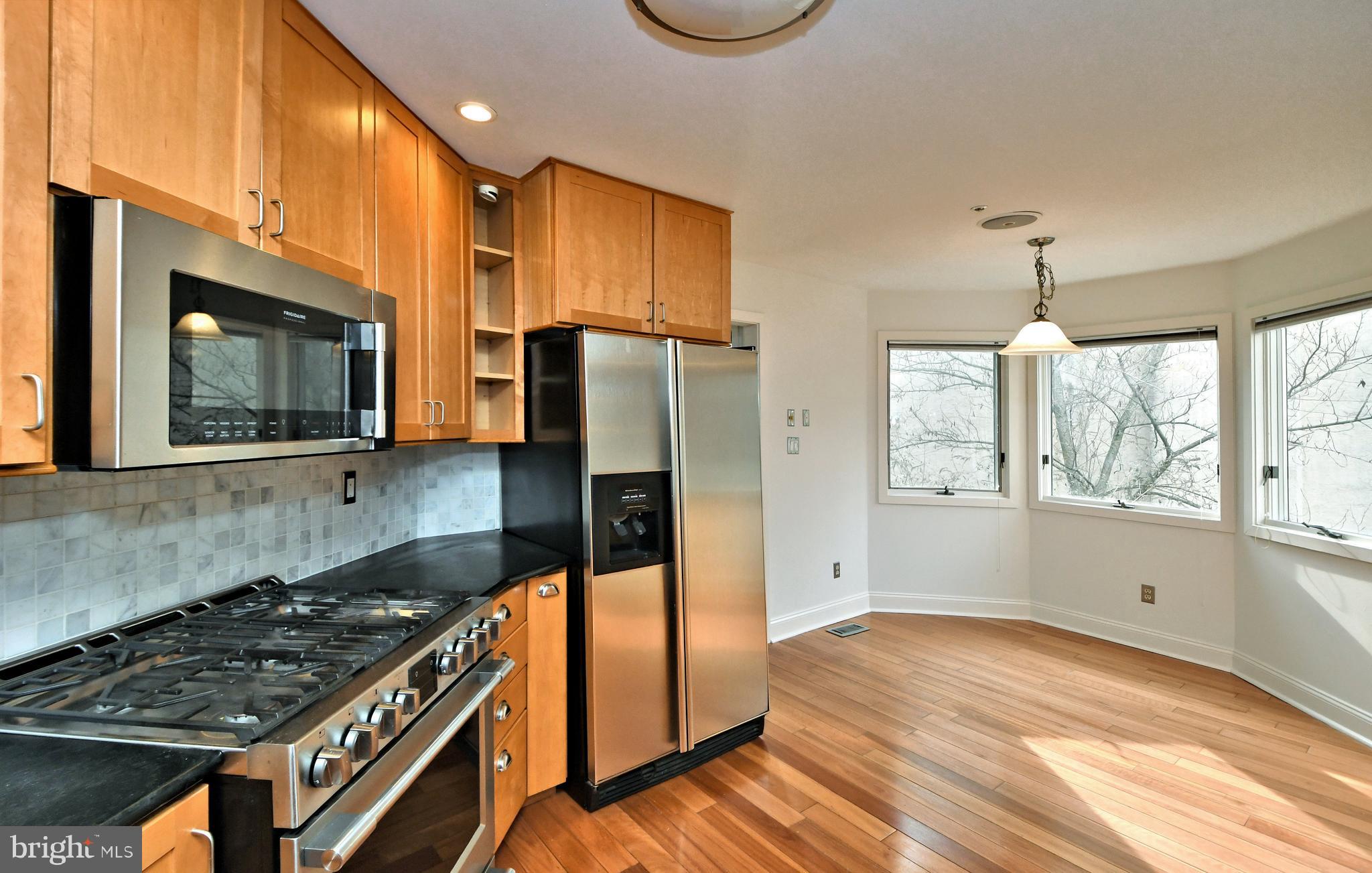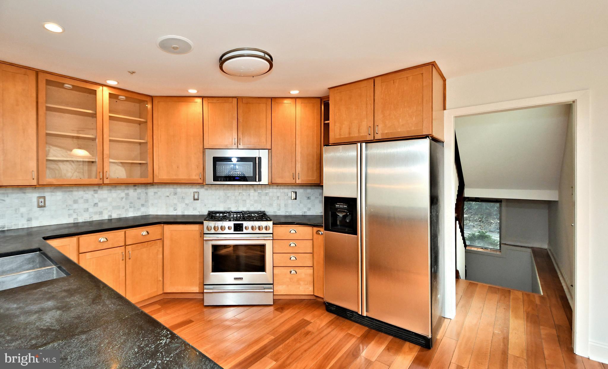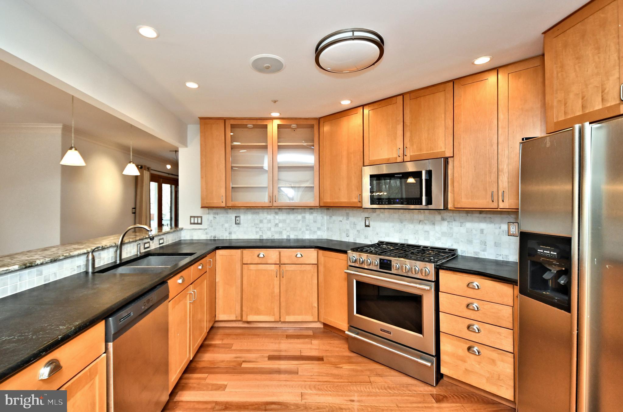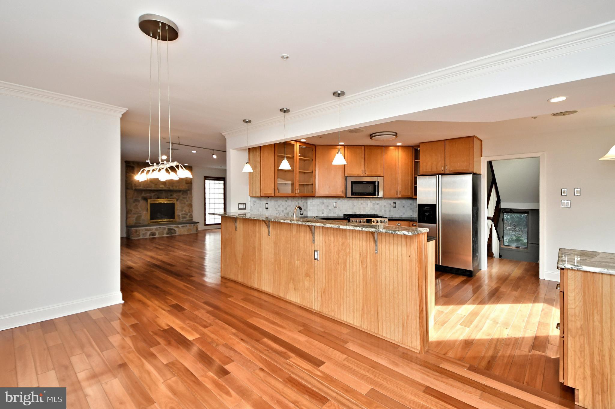 UNIQUE RESORT STYLE LIVING! The highlight of this three-story home is the Vail, Colorado-like setting, relaxing on a multi-level deck overlooking a salt-water pool, hot tub and tranquil grounds that include lush landscaping and stream. Upon entering this completely modernized home is the foyer with beautiful 3/4" Lyptus hardwood floors that lead into its' open main living space. A stone gas fireplace is an invitation to unwind after a stressful day. Oversized glass patio doors lead to a cover deck perched high above your private Oasis. The Sun-drenched kitchen offers oversized windows, with new maple cabinets, soapstone countertops, stainless dual sinks, custom tiered breakfast bar, stainless appliances and a five-burner chef's stove. Traveling up the impressive staircase to the owner's suite...another breathtaking space that will make every night feel like you are on vacation features a dramatic cathedral ceiling with a wood beam, hickory hardwoods, and its' own private deck overlooking the pool, yard and creek as well a NEW luxurious full bath, oversized shower with frameless glass door, custom vanity also with a vaulted ceiling a. Three bedrooms, ample closets, New laundry area and remodeled full bath complete the upper level. The lower level is above grade with an abundance of light coming from the large patio doors and windows, making this space great for casual gathering around the stone fireplace, extensive wainscoting and full bath. This additional square footage is ideal for an in-law or au pair suite, or at-home office. Exiting from the ground level is the third deck and access to heated pool and hot tub accented by gorgeous field stone, waterfalls, fountains and gas fire pit. Just imagine the incredible pool parties! All this privacy, yet you are so close to major routes like 76, 422, 202, and multiple train stations. Only minutes to Center City Philadelphia, King of Prussia and Conshohocken. Convenient two car attached garage and driveway parking. Easy to Show! Make your Appointment Today. BACK ON THE MARKET AFTER REMODELING! AVAILABLE FOR IMMEDIATE OCCUPANCY!