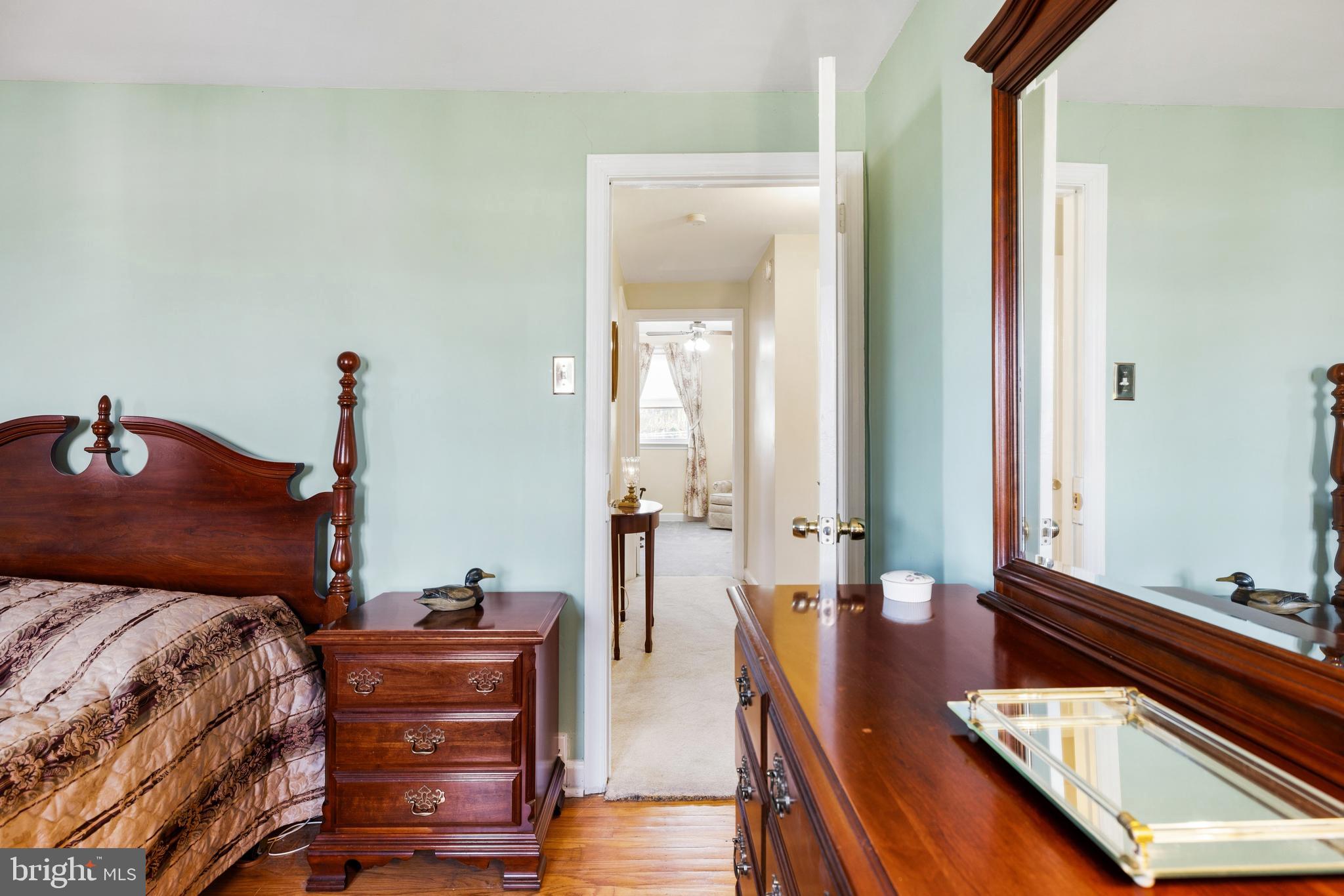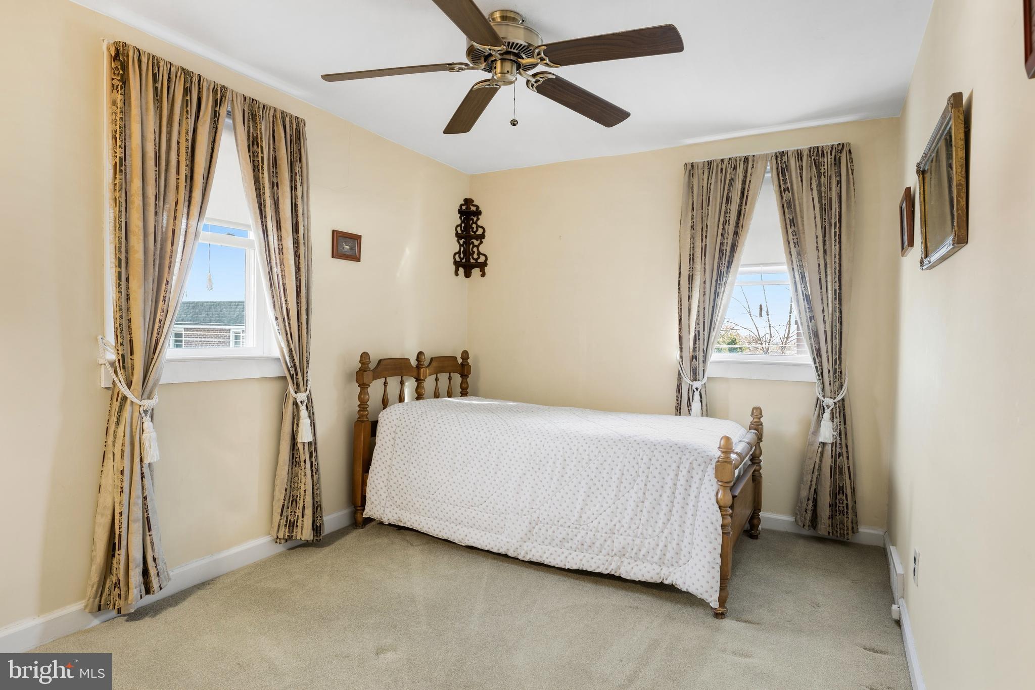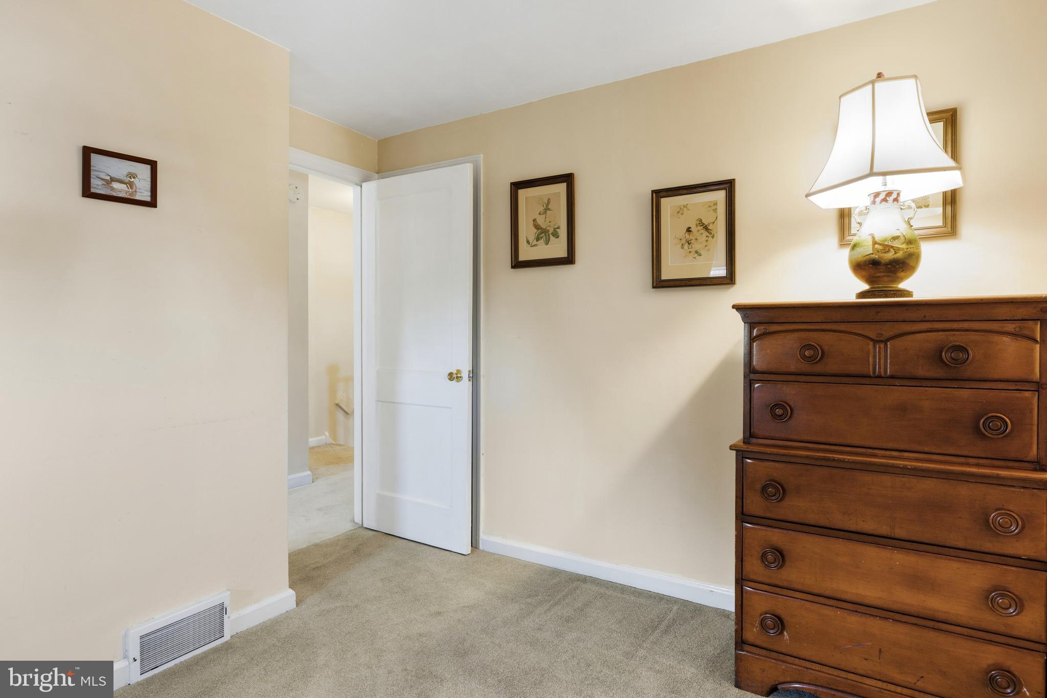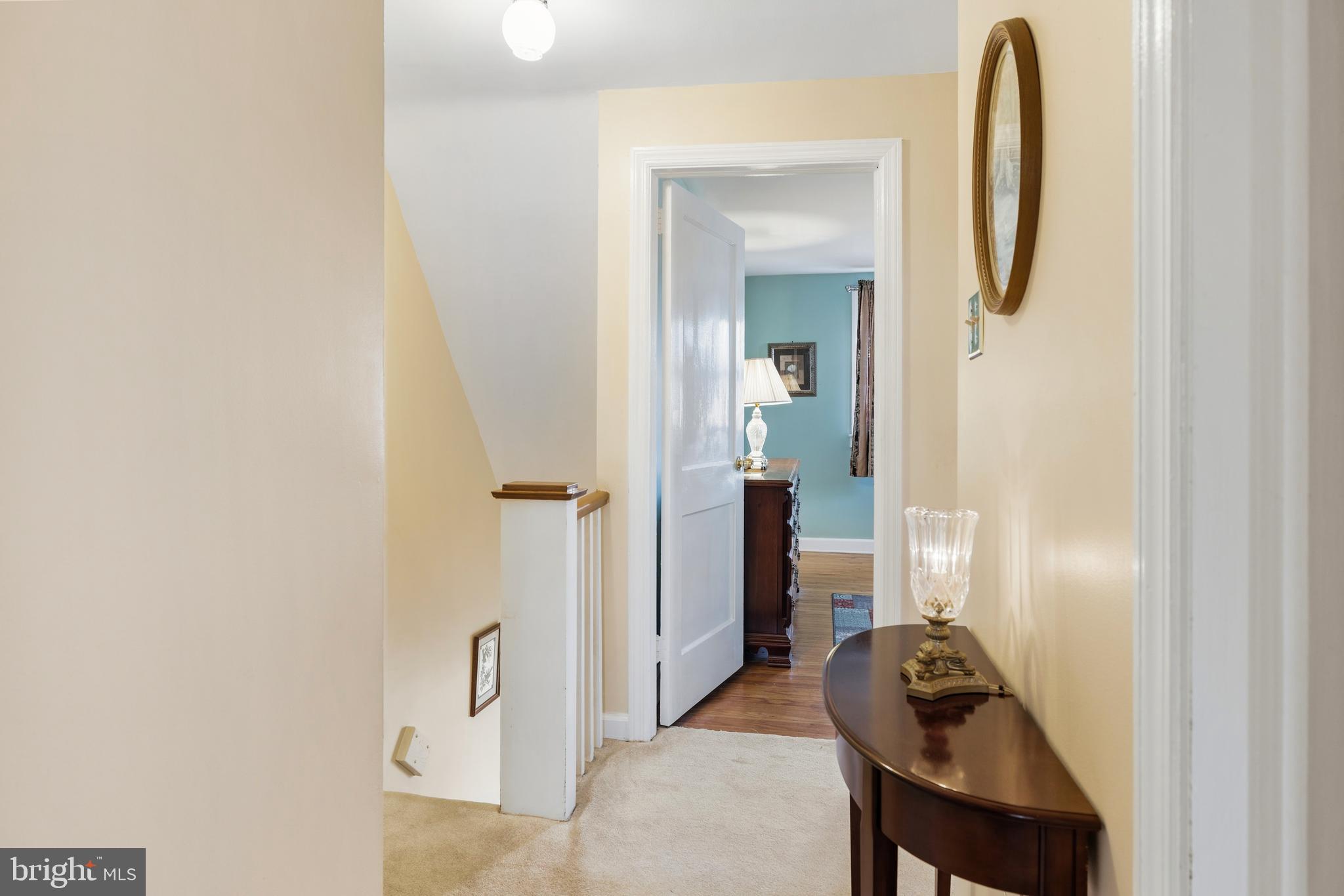 Upstairs, you'll find three comfortable bedrooms, including a primary bedroom with hardwood floors and two additional bedrooms with hardwoods preserved under the carpet. A well-kept full bathroom completes the second level.