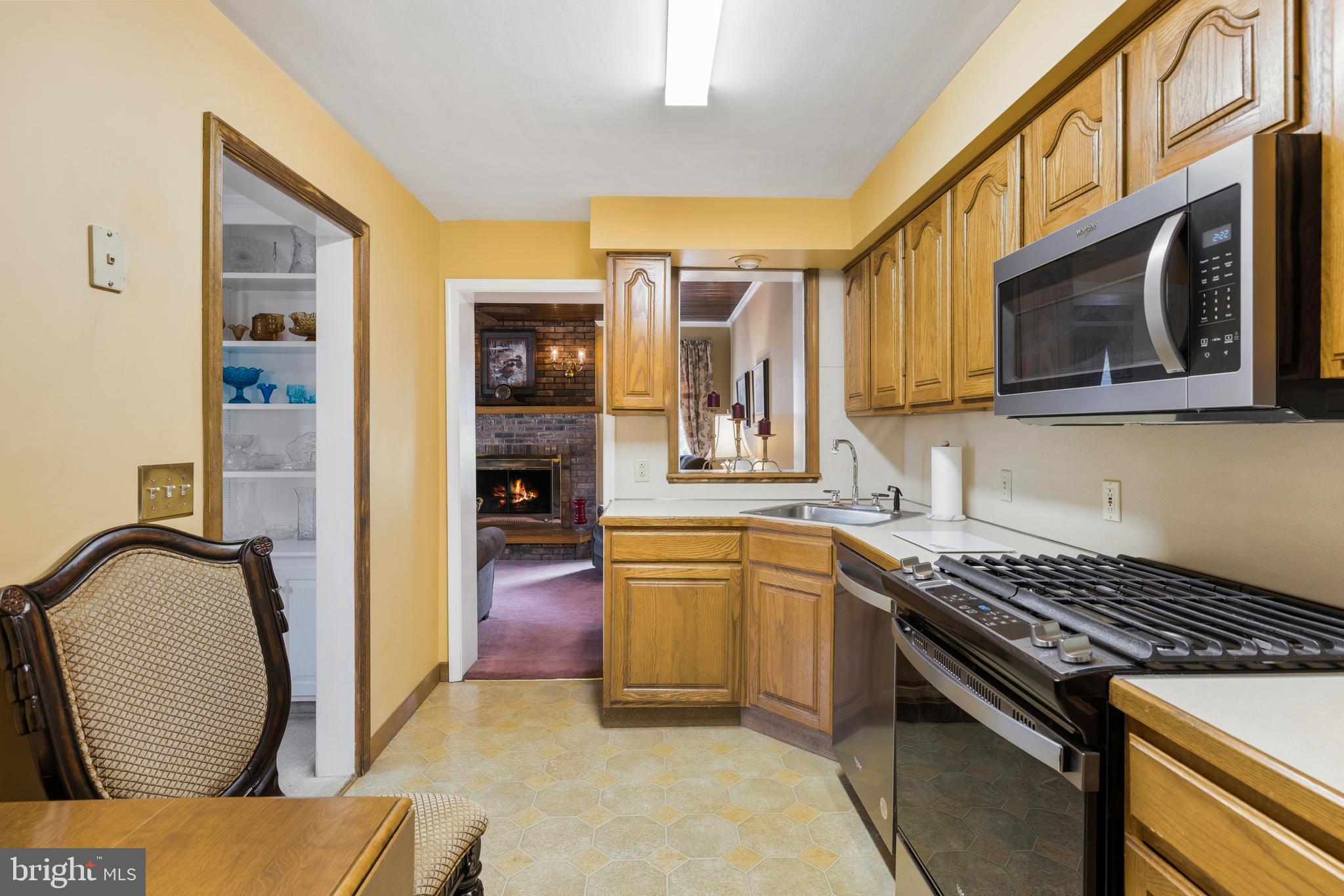 Step inside the bright and welcoming living room with a large picture window, followed by a dining room with built-in cabinetry and bookcases. Perfect for hosting and everyday living. The kitchen shines with brand-new stainless steel appliances, while the cozy family room features a gas fireplace, a unique tongue-and-groove wood ceiling, and access to a fenced-in backyard, creating a wonderful indoor/outdoor flow.