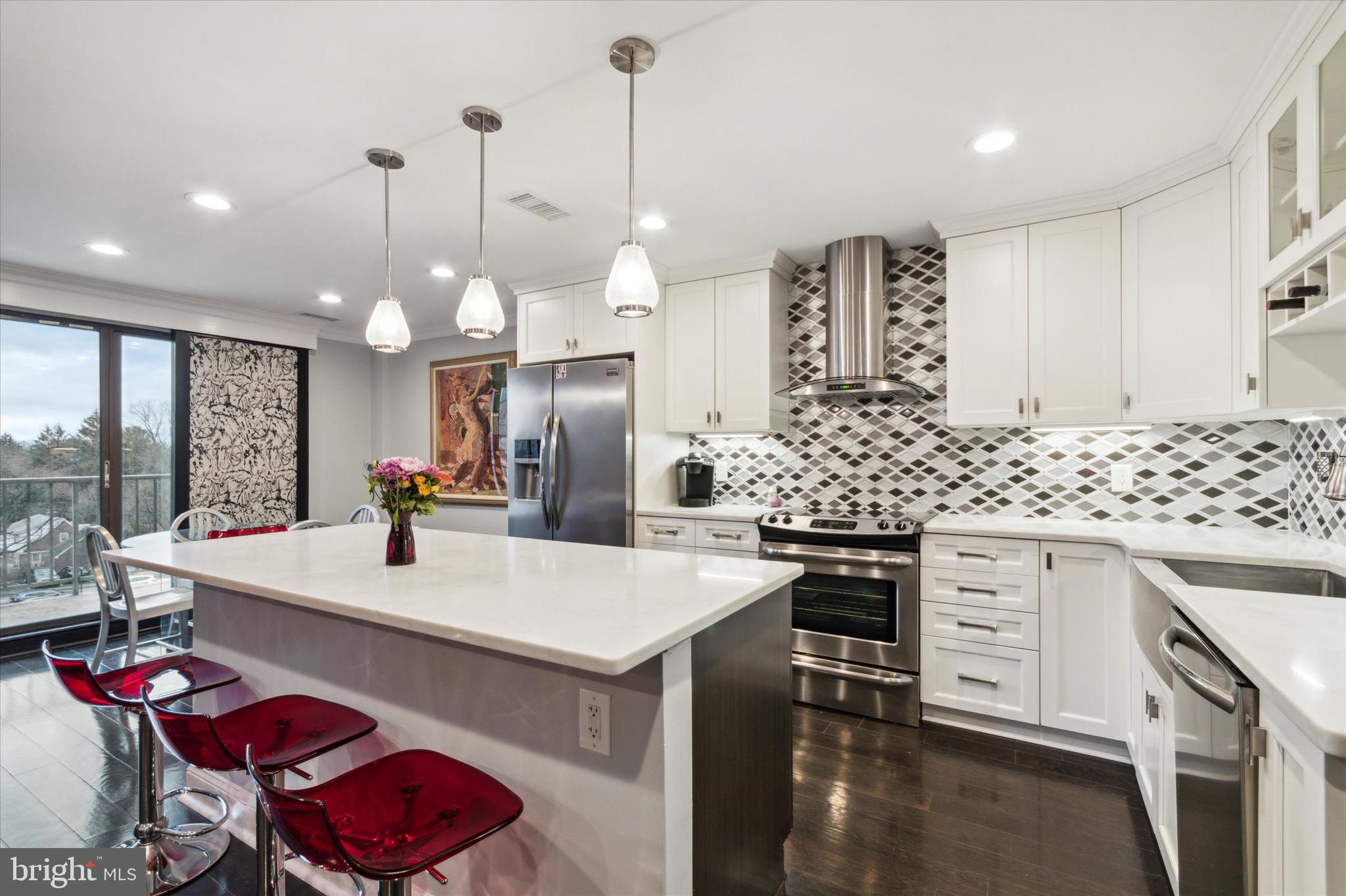 Holly House - where convenience was born !! One level, 5th floor, luxury living located close to major highways, transportation and within walking distance to downtown Media. All in the Award-winning Rose Tree Media School District. This must see FURNISHED unit has been renovated down to the walls with $100,000 of improvements and high end amenities. Close to the elevator, once inside the unit an open floor plan offers Living and Dining areas and a gourmet Kitchen w/ 40" high end cabinetry, gorgeous Level 5 stone counters, Farmhouse apron sink, luxury hood vent, designer glass and metal tile backsplash, Stainless Steel appliances and a large Island w/ under counter microwave and ample seating. The airy balcony w/ included seating is perfect for allowing plenty of Sunshine and Vitamin D, has a view of the community pool and features stylish custom designed sliding shades. Throughout this spacious unit you'll find Espresso wood flooring, crown molding and custom closet systems. Past the modern hall bath with marble flooring are 2 large bedrooms. The Master boasts huge double organized closets and an En-suite bathroom with marble floors, walk in shower, seamless glass doors, custom cabinets and lighted rim mirror. The bright, inviting 2nd Bedroom is spacious enough to use as an office or den with it's own organized closet. The Holly House features on-site Laundry facilities, a huge modern lobby, a relaxing in-ground pool, a community Library and Unit 511 has a separate secure storage area right down the hall. Look no further, it's time to move right in and relax !!