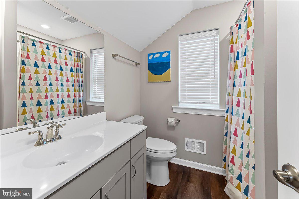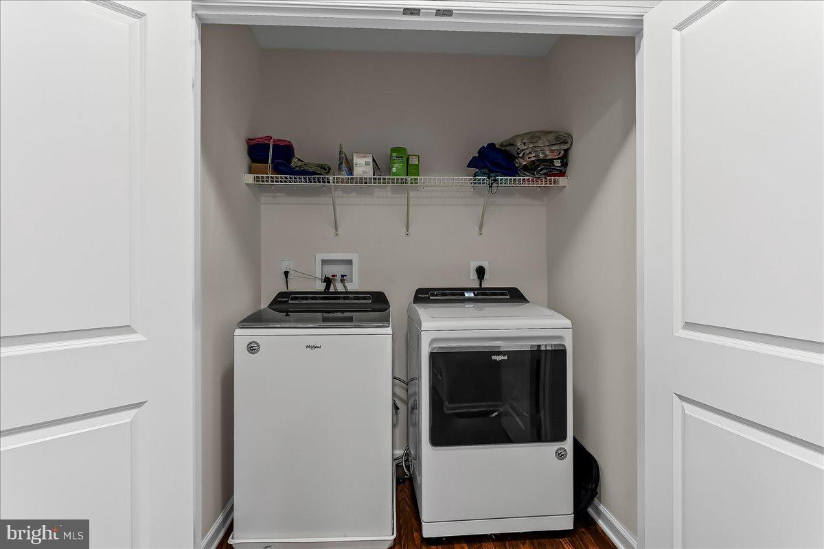 Each of the three full bathrooms is tastefully finished with modern tilework and fixtures. A dedicated laundry closet makes daily life even more convenient.