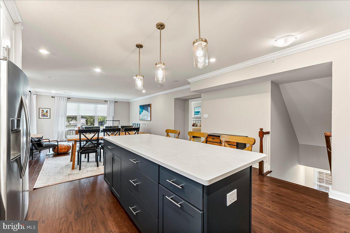 Pendant lighting and a generous pantry