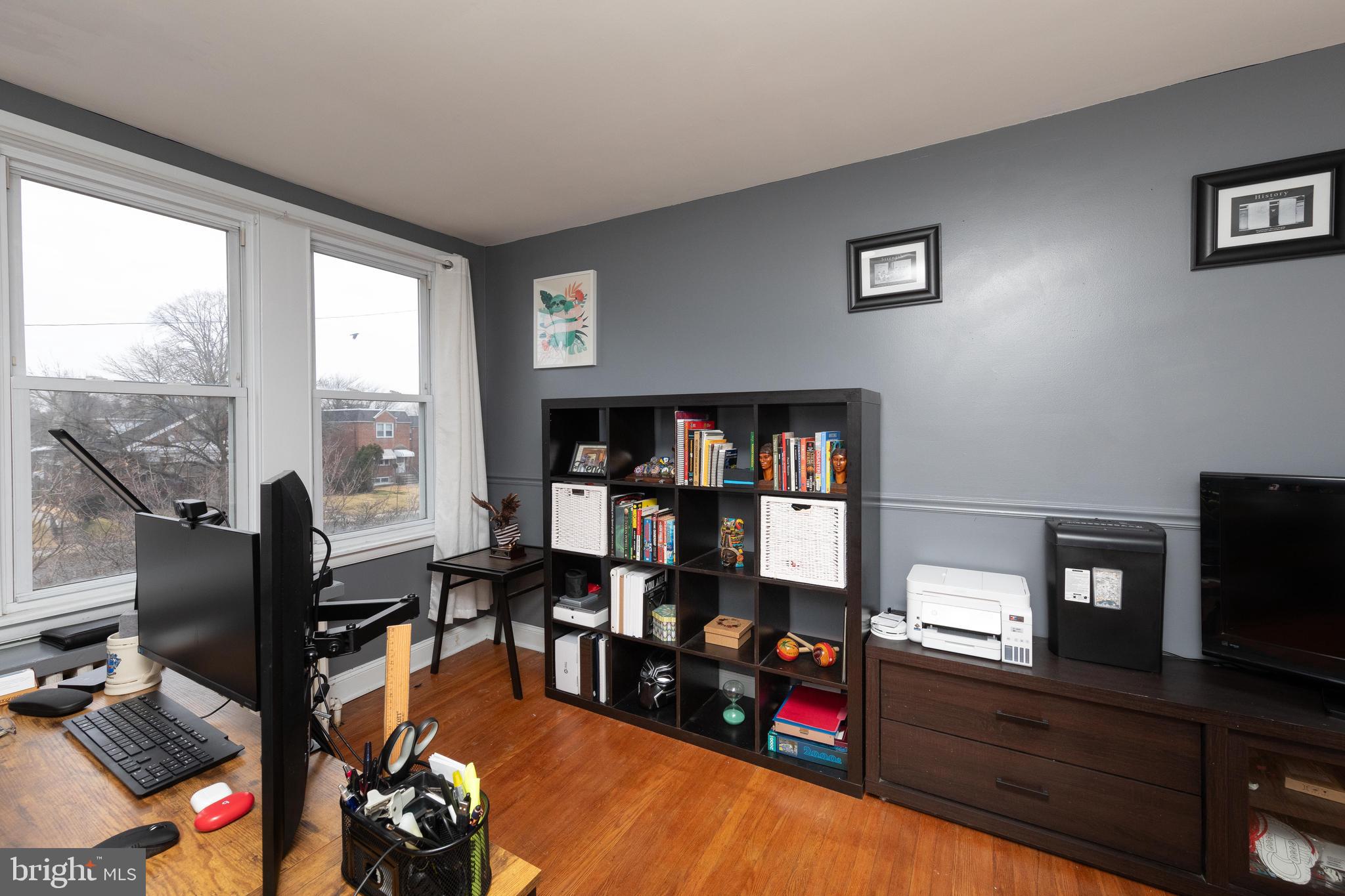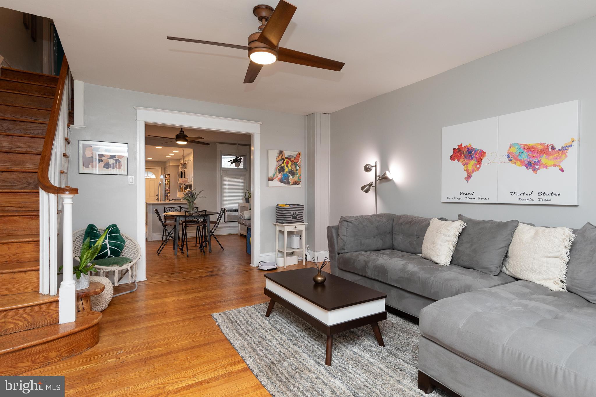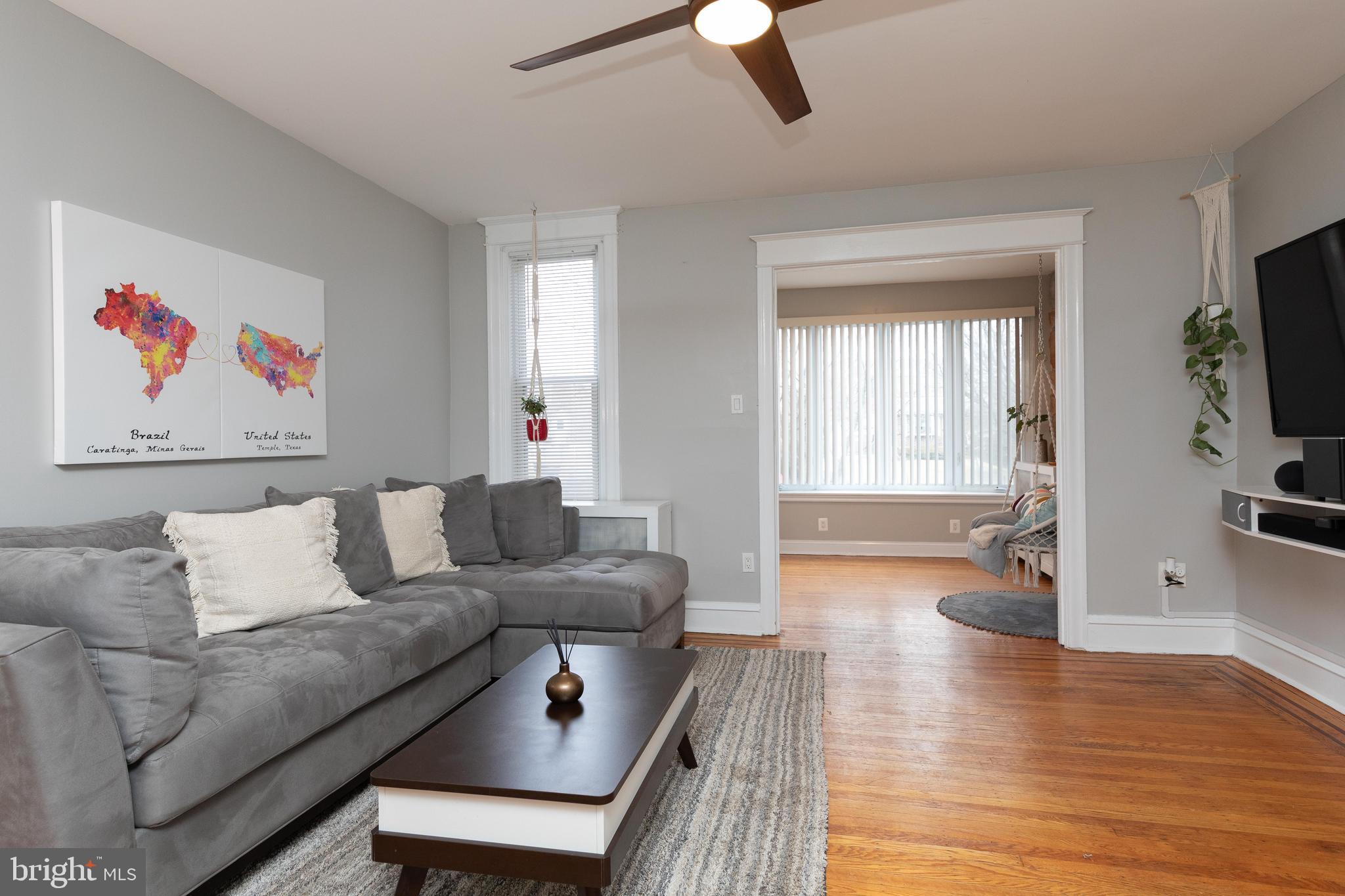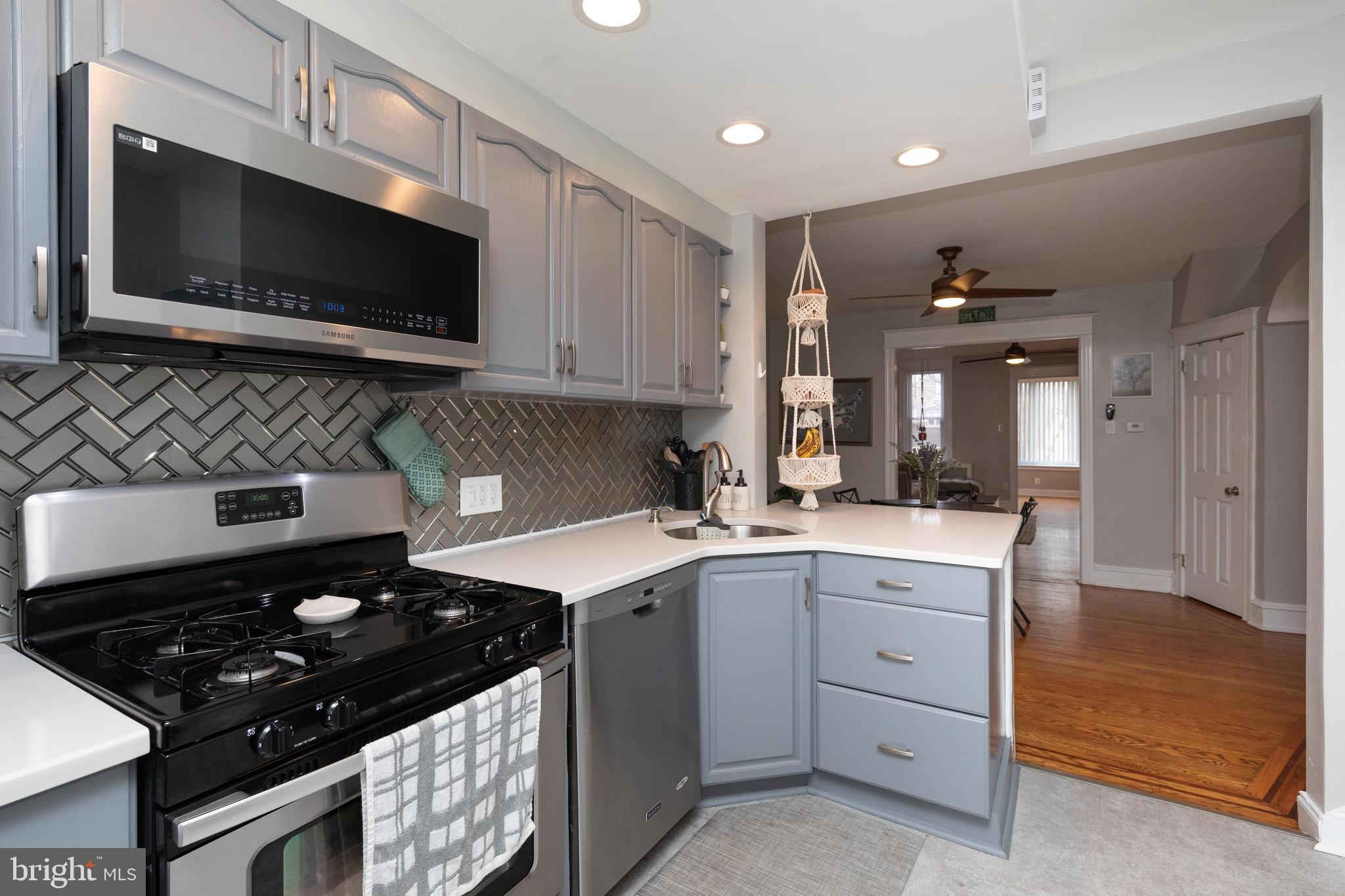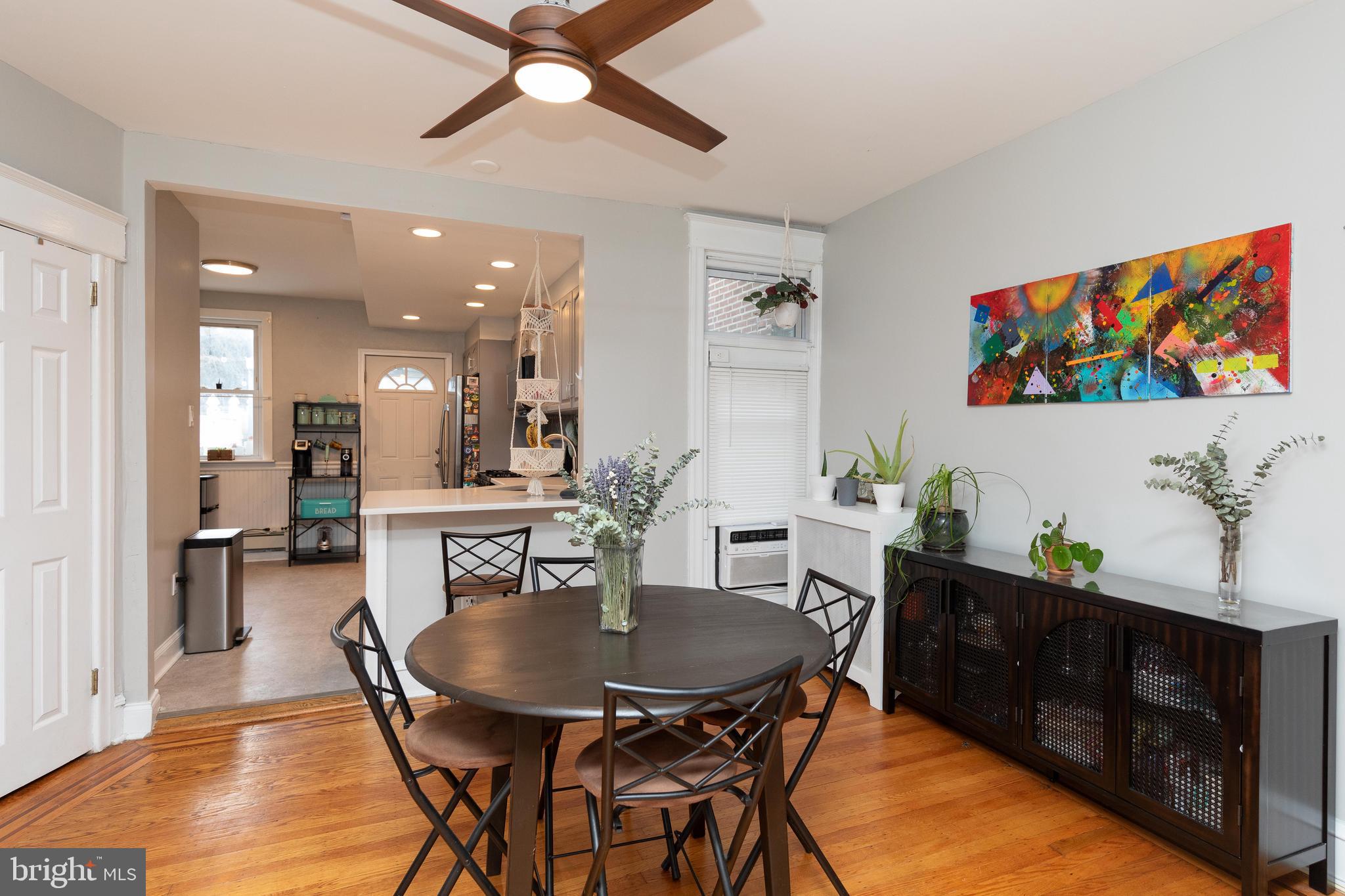 Spacious And Modern Roxborough Row With Off-Street Parking!! This brick stunner has been tastefully renovated by its current owners and in now ready for your future comfort! You'll immediately notice the large and spacious rooms throughout. The main floor features beautiful ribboned hardwood floors, an entry sun room with bay window and stone accent wall, a formal living room, a formal dining room, huge remodeled open kitchen with recessed lighting, gray cabinetry, quartz countertops, tile backsplash, stainless steel appliances and tons of cabinet and counter space. Upstairs features ribboned hardwood floors throughout, 3 spacious bedrooms with great closet space and a completely remodeled full bathroom. Other features include built-in shelving, modern ceiling fans and lighting, a full basement that features a finished bonus room, modern full bath, and a laundry/storage room, and a back patio with a storage shed. A huge feature is the 2 car off-street driveway parking which is always clutch in the city! This Roxborough gem is conveniently located right across the street from the trails of Fairmount Park and within minutes to shopping, dining, all forms of public transportation, and highway entrances. This home shows beautifully and you will fall in love!!